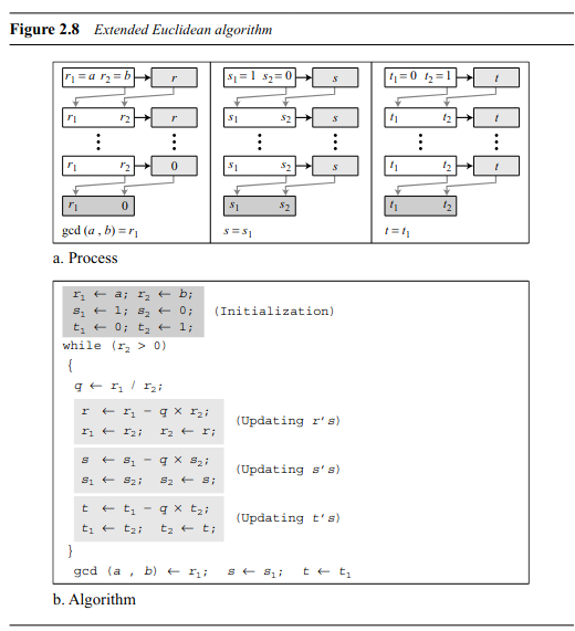 این مراحل نشان میدهد که چگونه الگوریتم اقلیدسی توسعهیافته GCD و همچنین ضرایب x و y را پیدا میکند که معادلهی ax + by = \text{GCD}(a, b) را ارضا میکند.